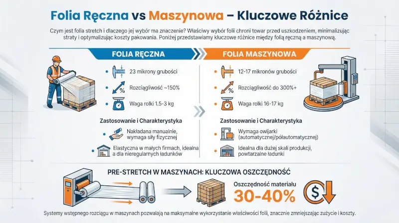 Jakie są główne różnice między folią stretch ręczną a maszynową?